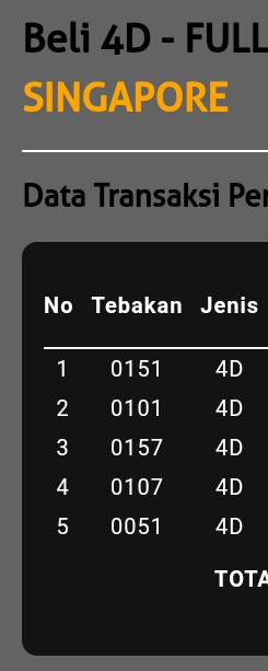 MASTER SINGAPURA Minggu, 05-10-2025 Merupakan Prediksi Otomatis yang menggabungkan Metode Kalender Togel Dengan Rumus-rumus kontrol yang sudah terbukti keakuratanya.Gunakan Aplikasi Rekap untuk mendapatkan LN TOP. Harap Maklum Jika kadang meleset MASTER SINGAPURA kita. Jadikan ini sebagai perbandingan saja dan tetap UPS