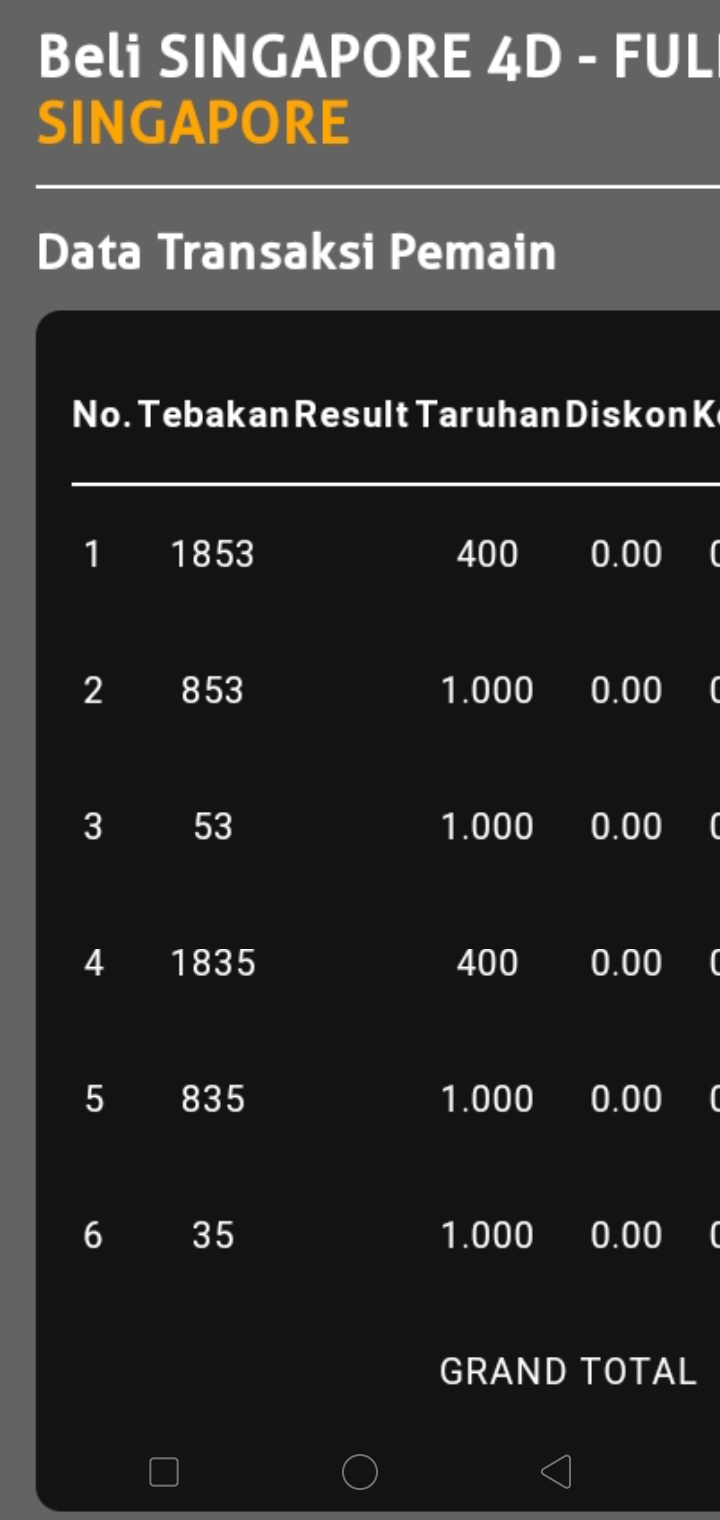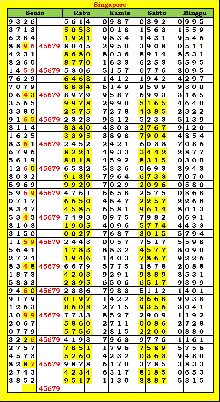MASTER SINGAPURA Sabtu, 04-10-2025 Merupakan Prediksi Otomatis yang menggabungkan Metode Kalender Togel Dengan Rumus-rumus kontrol yang sudah terbukti keakuratanya.Gunakan Aplikasi Rekap untuk mendapatkan LN TOP. Harap Maklum Jika kadang meleset MASTER SINGAPURA kita. Jadikan ini sebagai perbandingan saja dan tetap UPS