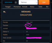 MASTER SINGAPURA Sabtu, 04-10-2025 Merupakan Prediksi Otomatis yang menggabungkan Metode Kalender Togel Dengan Rumus-rumus kontrol yang sudah terbukti keakuratanya.Gunakan Aplikasi Rekap untuk mendapatkan LN TOP. Harap Maklum Jika kadang meleset MASTER SINGAPURA kita. Jadikan ini sebagai perbandingan saja dan tetap UPS
