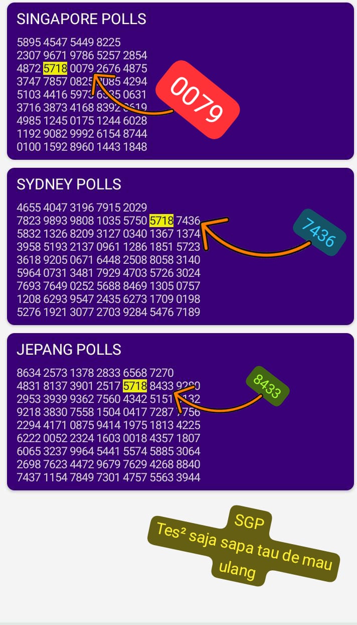 Prediksi Ini Berubah secara otomatis sesuai hari dan result pasaran masing-masing. Untuk melihat prediksi sebelumnya klik tombol nomor hitam diatas