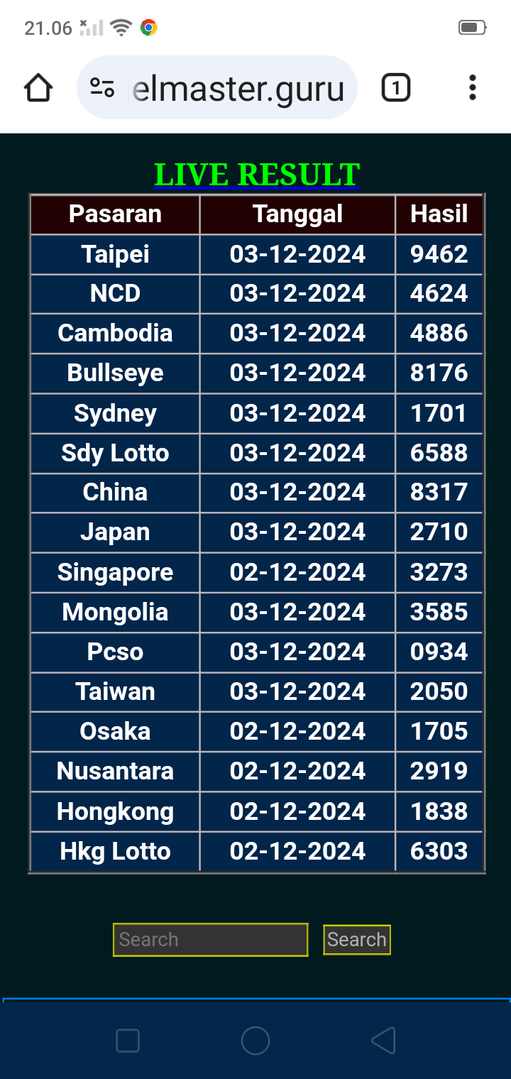 MASTER TAIWAN Rabu, 03-09-2025 Merupakan Prediksi Otomatis yang menggabungkan Metode Kalender Togel Dengan Rumus-rumus kontrol yang sudah terbukti keakuratanya.Gunakan Aplikasi Rekap untuk mendapatkan LN TOP. Harap Maklum Jika kadang meleset MASTER TAIWAN kita. Jadikan ini sebagai perbandingan saja dan tetap UPS